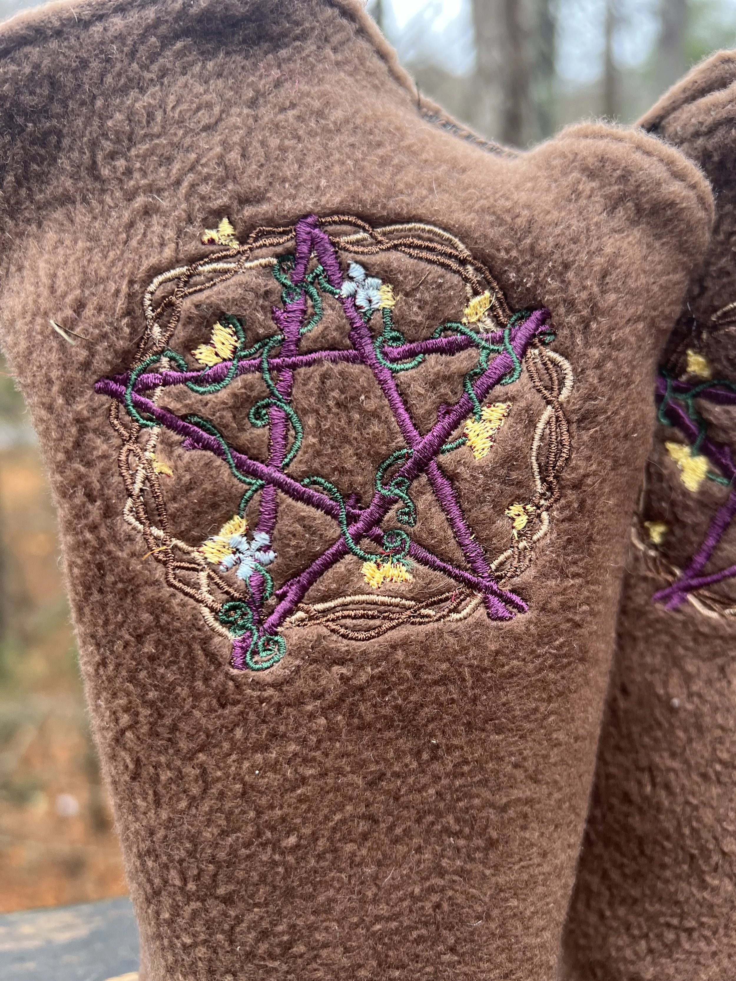 Embroidered fingerless mitts combine style and practicality, offering a unique way to express your individual flair while keeping your hands warm and cozy. Perfect for fall festivals, daily wear, or anyone who works with their hands and needs fingers free, these mitts provide the ideal balance between comfort and functionality. Made from soft, fuzzy fleece, they keep your hands pleasantly warm without sacrificing dexterity—making them an excellent choice for outdoor activities and cold offices alike .